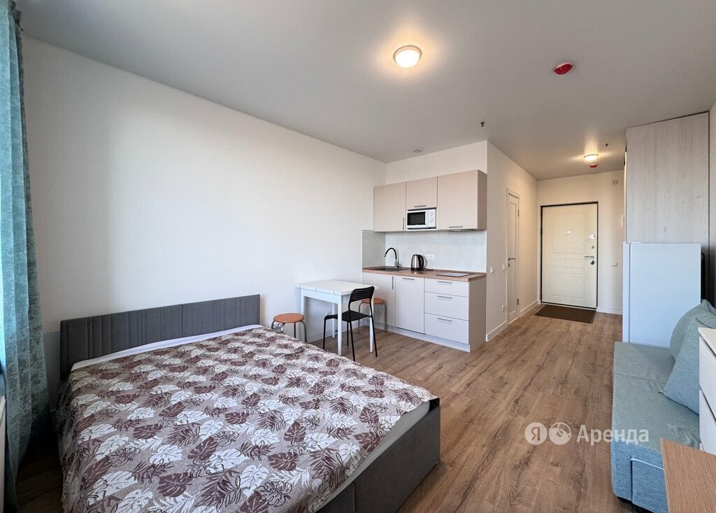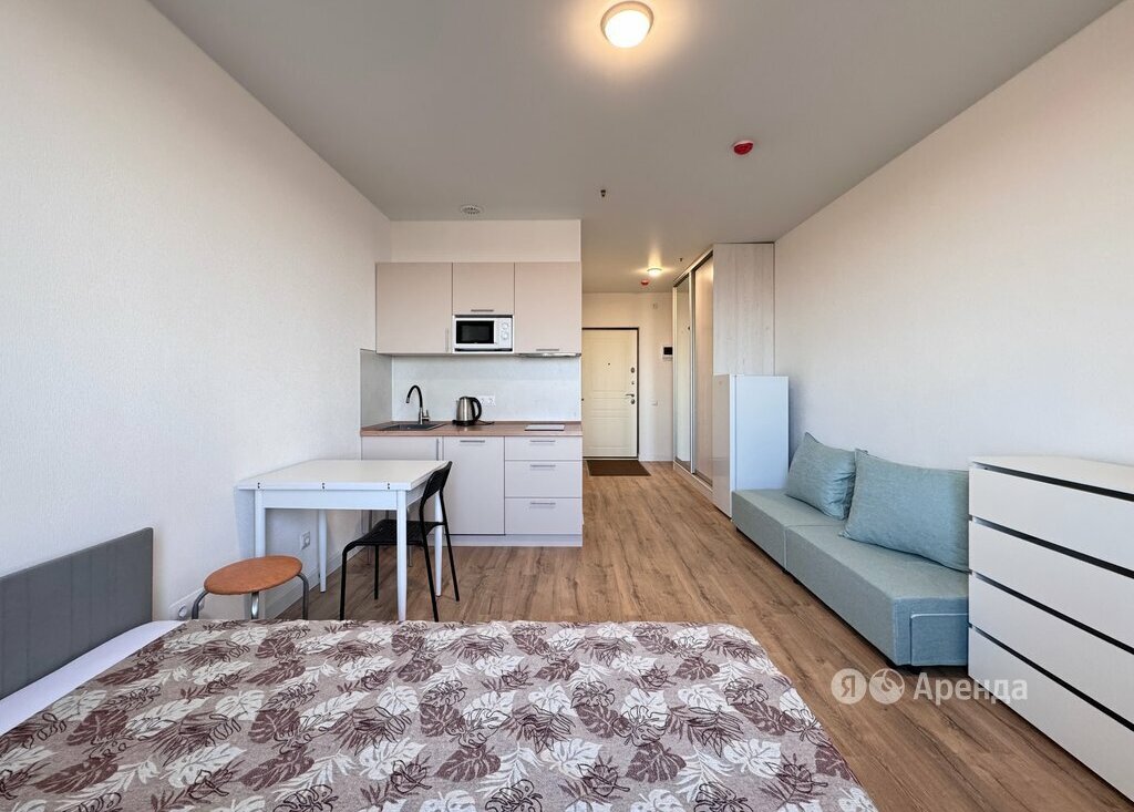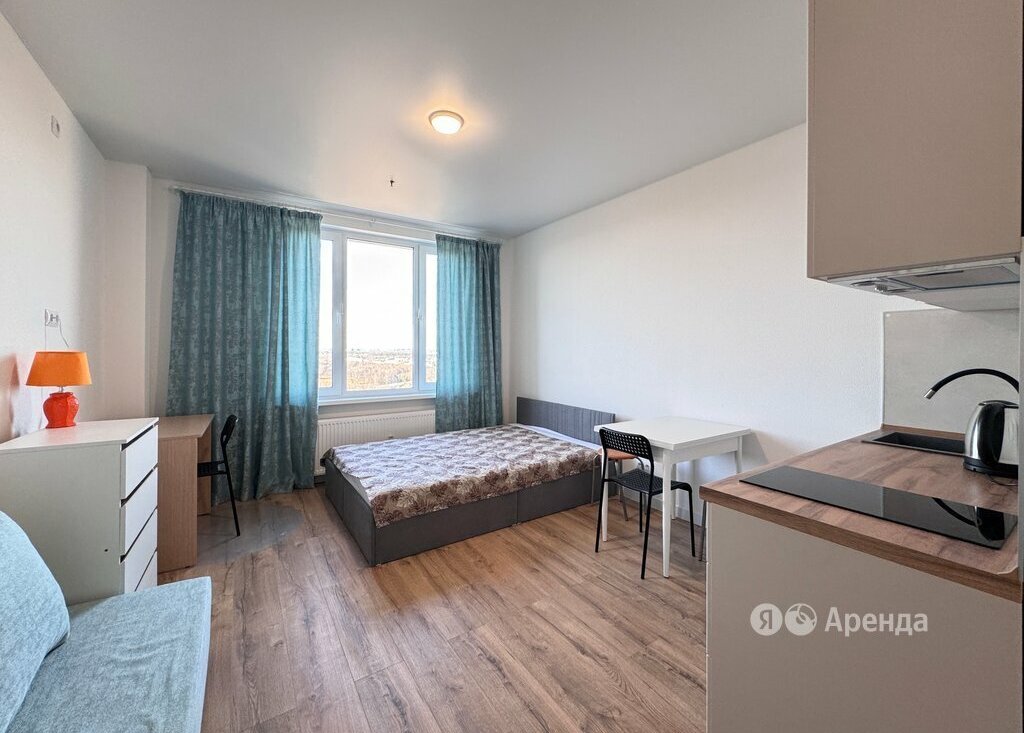 Сдаётся студия площадью 24 кв.м. с косметическим ремонтом на 21 этаже в 28-этажном доме на срок от 11 месяцев. Из техники есть: