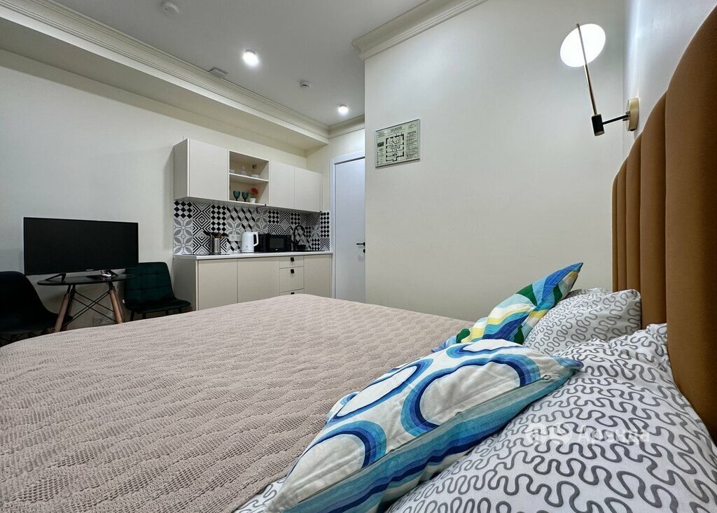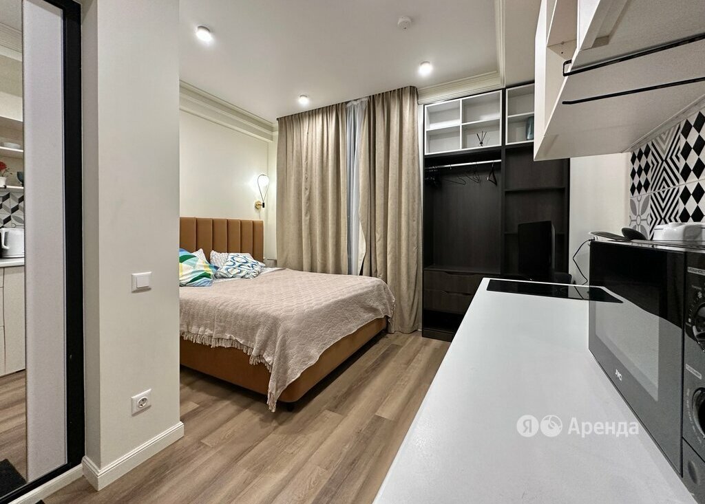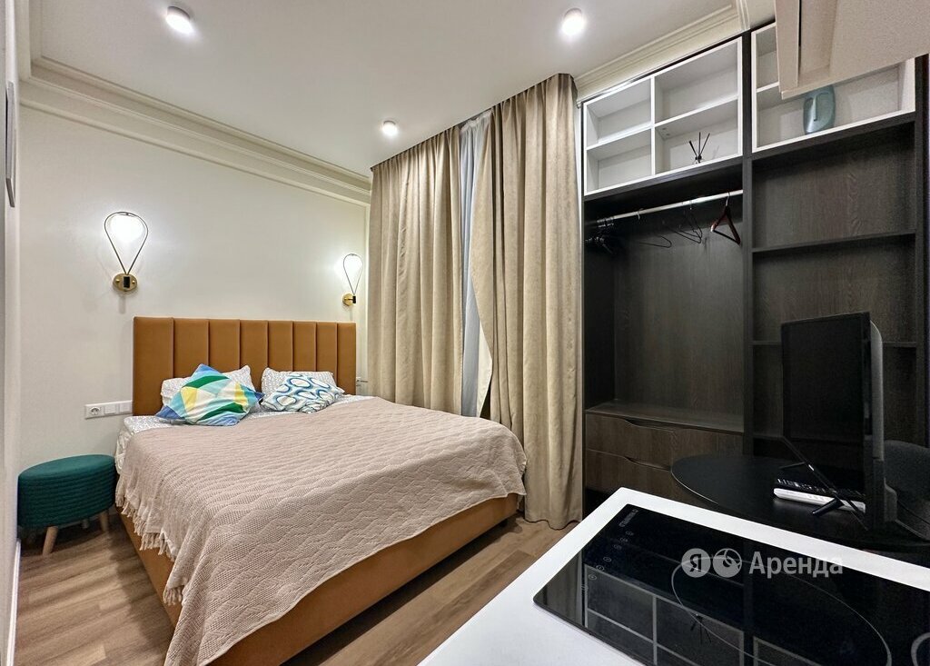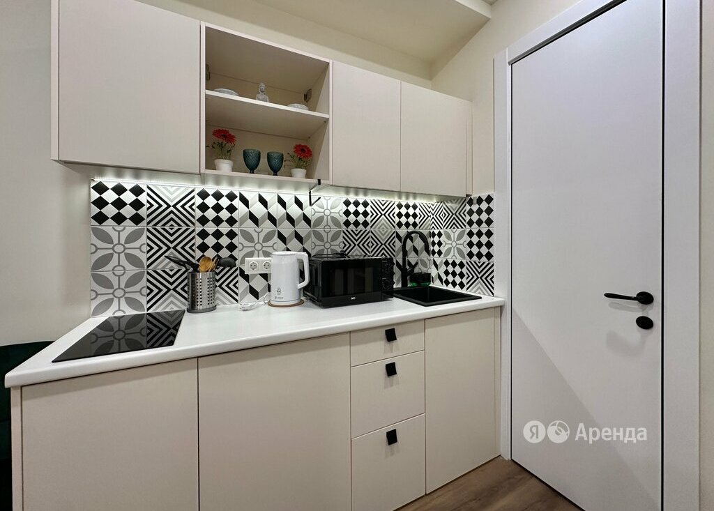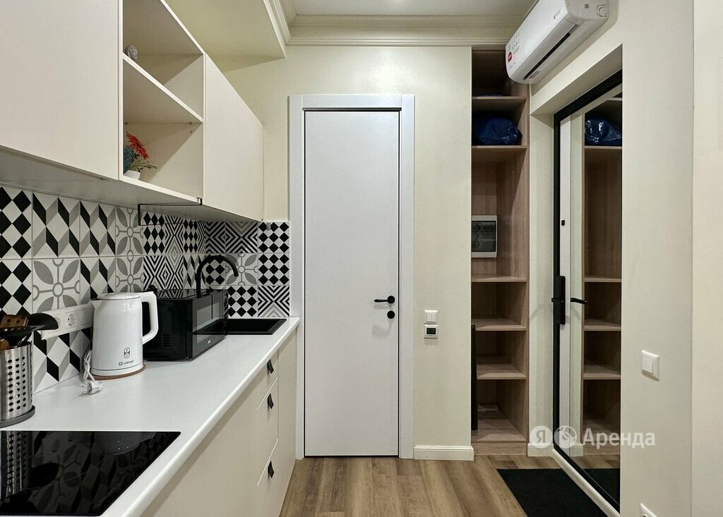 Сдаётся студия площадью 14 кв.м. с дизайнерским ремонтом на 1 этаже в 11-этажном доме на срок от 11 месяцев. Из техники есть: