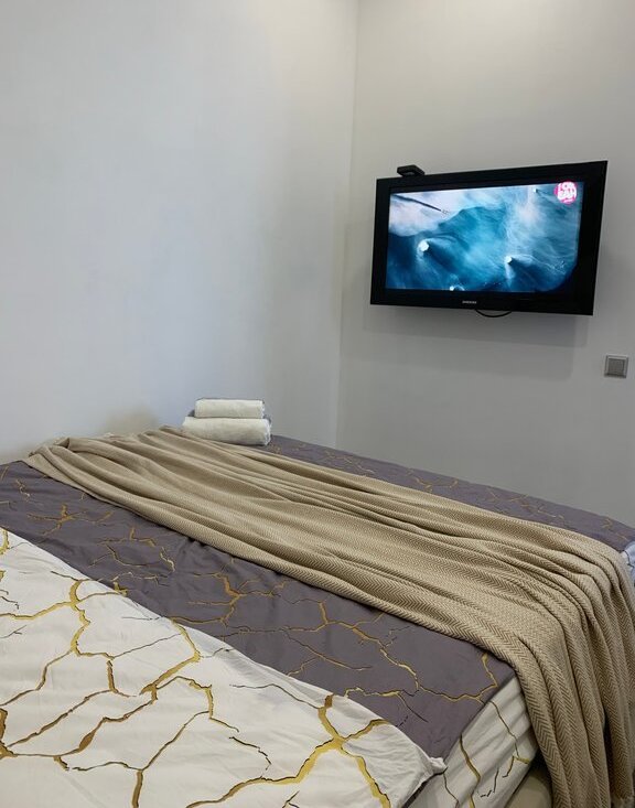 Студия полностью готова к проживанию: здесь есть необходимая мебель на кухне и в комнате, а также современная техника — кондиционер, холодильник, посудомоечная и стиральная машины, телевизор. В совмещенном санузле установлена душевая кабина. Высокоскоростной интернет обеспечит комфортную работу и досуг.