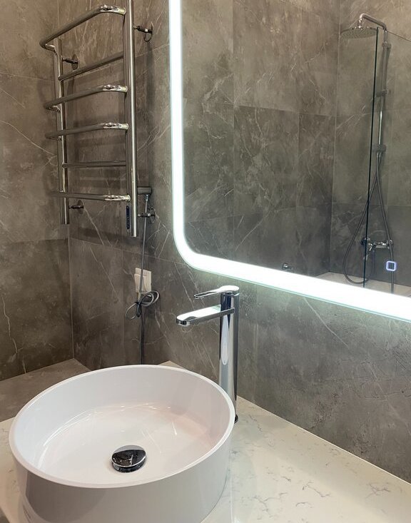 В апартаменте спроектированы три зоны теплого пола, кондиционер, домофон и высокоскоростной интернет, есть SMART TV.