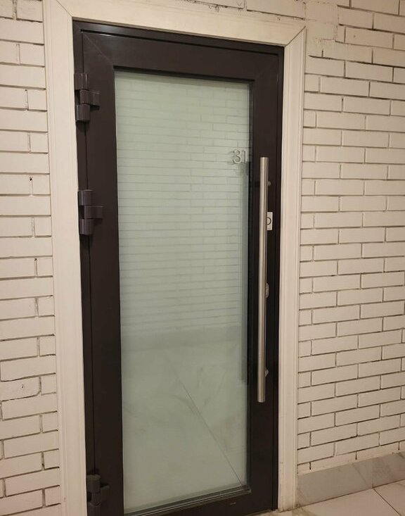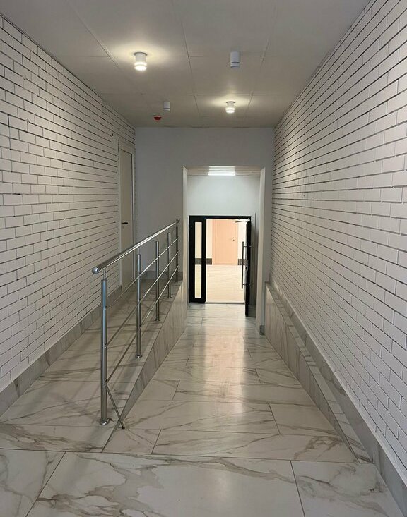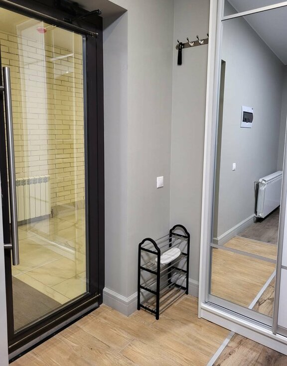 Вход в квартиру не с улицы, как у всех апартаментов первого этажа, а с тёплого коридора.
