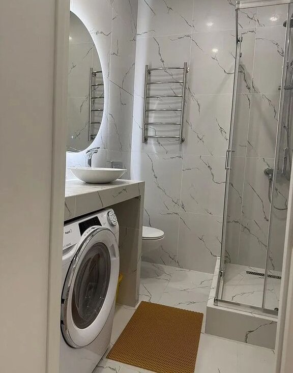 Санузел с просторной душевой кабиной. Техника: холодильник, стиральная машина, духовой шкаф, плита, вытяжка, кондиционер, чайник, пылесос, утюг. Курение запрещено, проживание с детьми и животными не допускается. Залог составляет 70,000 рублей. Коммунальные услуги оплачиваются арендатором по счетчикам. Квартира сдается впервые.