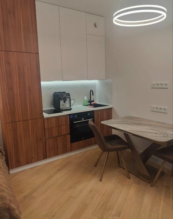 Сдается в аренду (долгосрочно, сроки аренды обсуждаются в индивидуальном порядке) стильная видовая студия с новым дизайнерским ремонтом в монолитном доме Бизнес- класса 2023 года постройки! Дом камерный, всего два подъезда-редкость для московской застройки! Зеленый, тихий район Москвы! Охраняемая огороженная территория ЖК, есть охрана, видеонаблюдение по территории и внутри дома, в т.ч. на этажах.