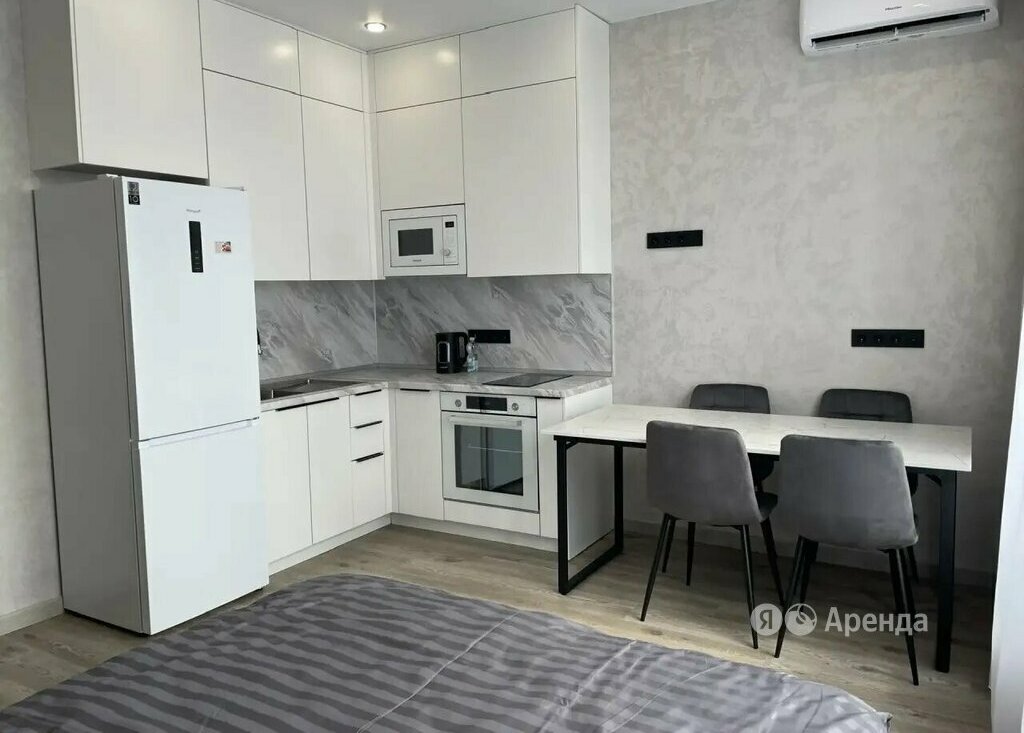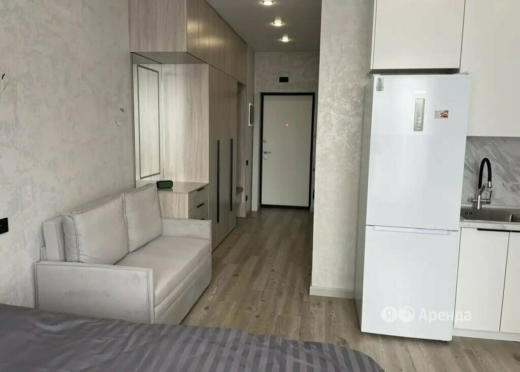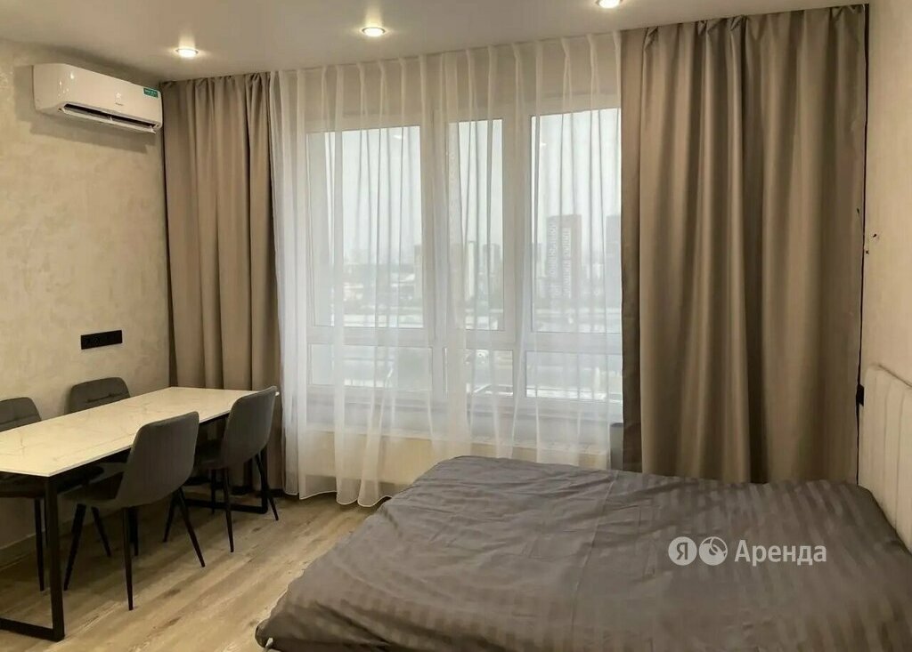 Сдаётся студия площадью 26 кв.м. с евроремонтом на 16 этаже в 25-этажном доме на срок от 11 месяцев. Из техники есть: