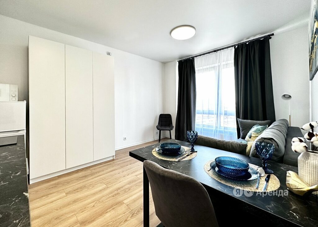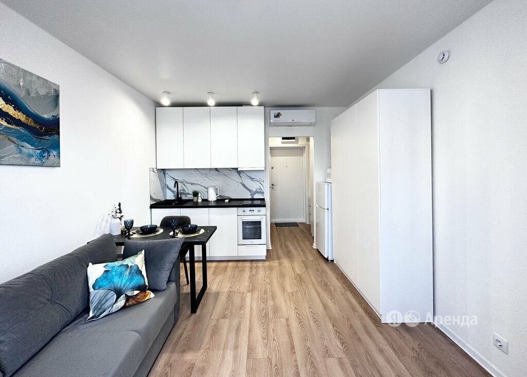 Сдаётся студия площадью 20 кв.м. с евроремонтом на 9 этаже в 33-этажном доме. Из техники есть: