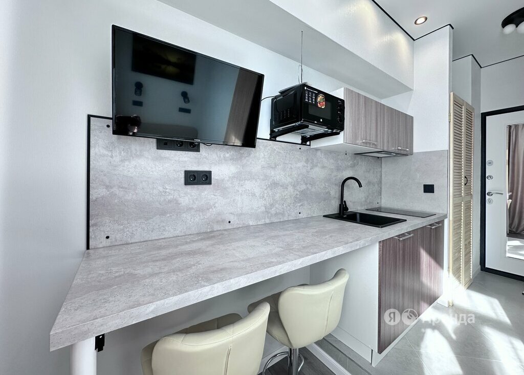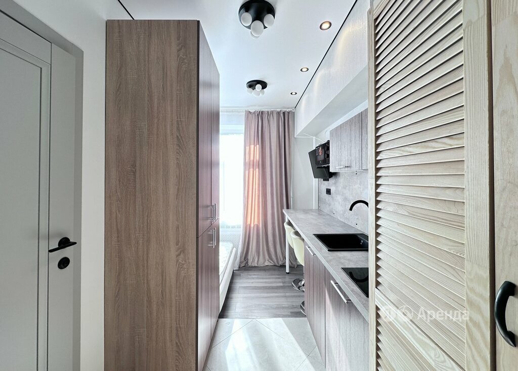 Сдаётся студия площадью 14 кв.м. с евроремонтом на 2 этаже в 5-этажном доме на срок от 11 месяцев. Из техники есть: