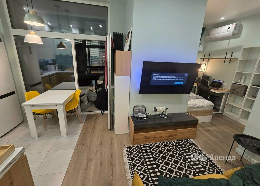 Сдаётся студия площадью 34 кв.м. с дизайнерским ремонтом на 31 этаже в 31-этажном доме на срок от 11 месяцев. Из техники есть: