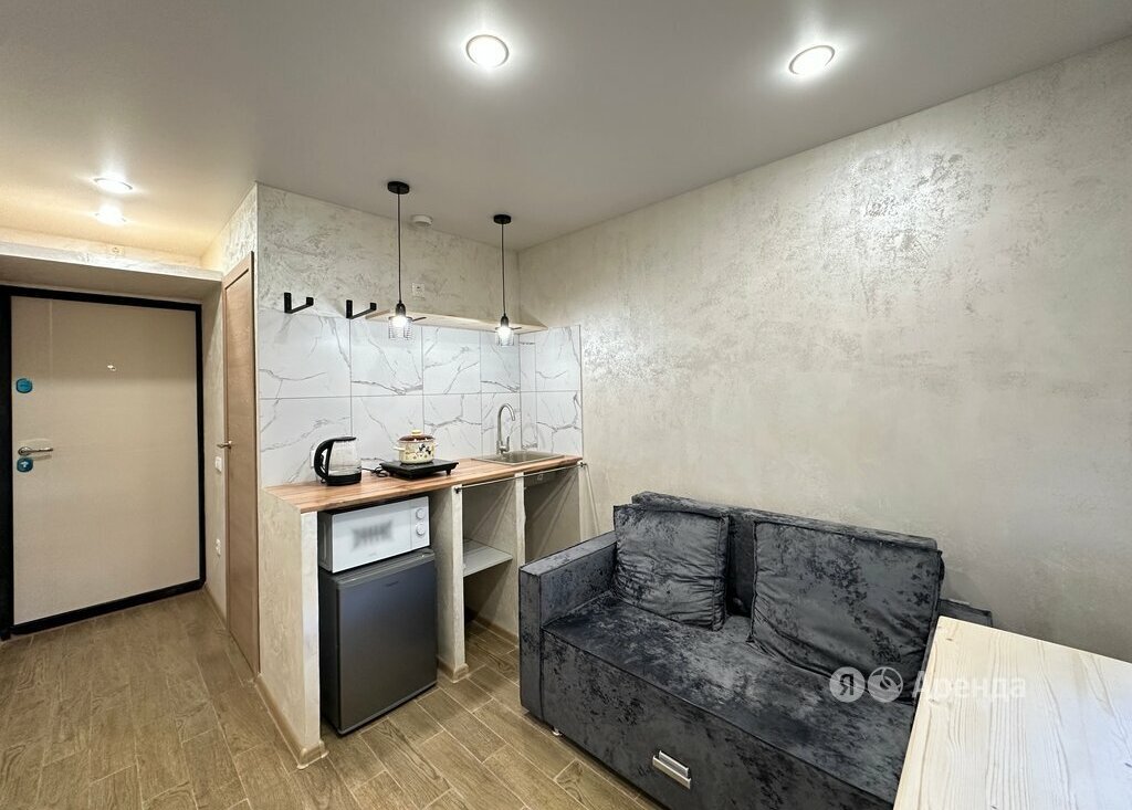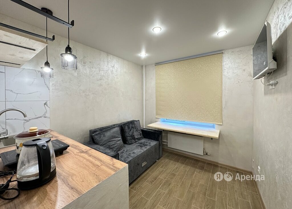 Сдаётся студия площадью 12 кв.м. с косметическим ремонтом на 1 этаже в 9-этажном доме на срок от 11 месяцев. Из техники есть: