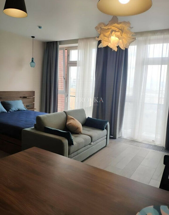Светлая и уютная квартира в современном жилом комплексе бизнес-класса «Невский». Пространство площадью 32 м² грамотно организовано, выполнен качественный евроремонт, высокие потолки создают ощущение простора, а из окон открывается приятный вид на воду. Квартира полностью готова к проживанию: есть вся необходимая мебель и техника, включая кондиционер, стиральную машину, холодильник и телевизор.