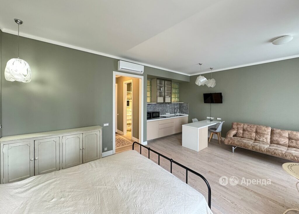 Сдаётся студия площадью 38 кв.м. с евроремонтом на 5 этаже в 28-этажном доме на срок от 11 месяцев. Из техники есть: