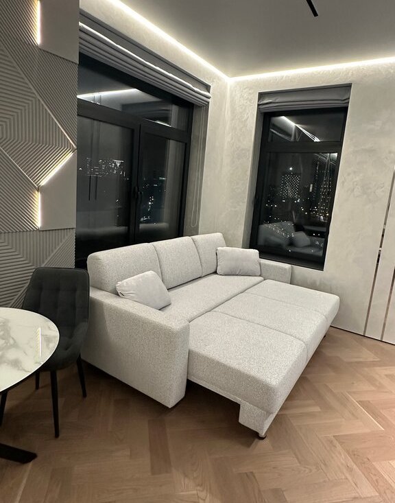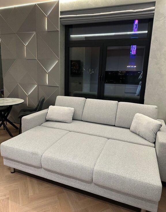 Квартира с премиум ремонтом и французским балконом полностью укомплектована премиум-техникой: холодильник, плита, стиральная машина с сушкой, посудомоечная машина, микроволновка с духовкой, кондиционер, пылесос, утюг, гладильная доска. В гостиной — дорогой удобный раскладной диван 8 марта для комфортного сна, матрас, подушки, одеяло, все новое. Большой вместительный шкаф, телевизор и полный набор посуды. Сделана шумоизоляция стен, пола и потолка. Есть приточно-вытяжная система вентиляции (воздух всегда свежий без необходимости открывать окна).
