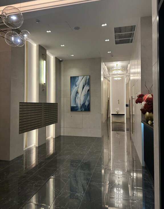 Шикарная входная группа с консьержем, круглосуточная охрана и закрытая территория с детскими площадками, зонами отдыха и спортивными комплексами. Есть собственный спортзал, а рядом — красивые парки и удобная транспортная доступность.