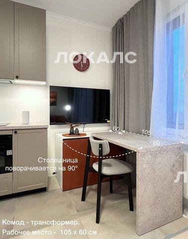 - Если вам потребуется работать из дома, то вашим помощником станет функциональный терракотовый комод с поворотной столешницей, который одним движением руки превращается в полноценное рабочее место (105+55)х60 см.