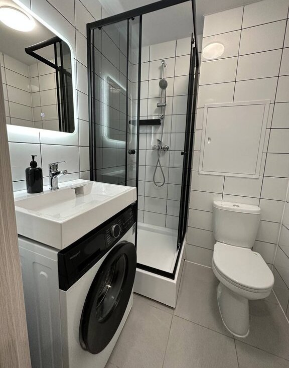 В квартире имеется все необходимое для комфортного проживания: холодильник, кондиционер, стиральная машинка, диван-кровать, кухня с варочной панелью, микроволновка, чайник, телевизор, 2 больших шкафа для хранения вещей.