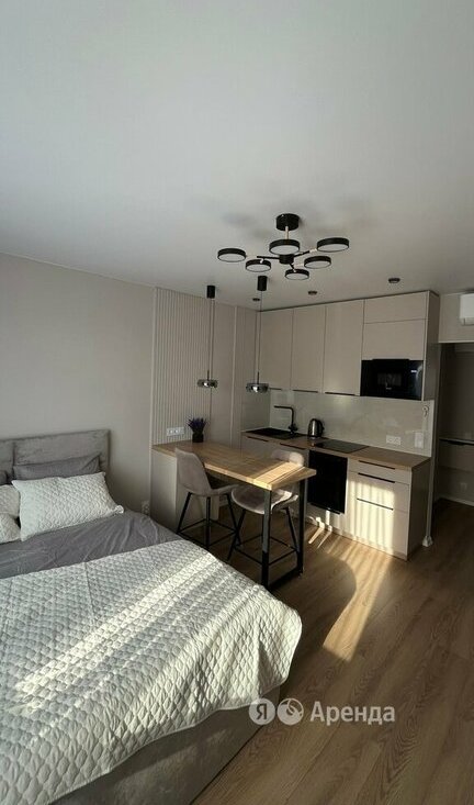 Сдаётся студия площадью 23 кв.м. с евроремонтом на 20 этаже в 33-этажном доме на срок от 11 месяцев. Из техники есть: