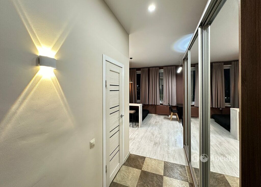 Сдаётся студия площадью 25 кв.м. с евроремонтом на 9 этаже в 23-этажном доме на срок от 11 месяцев. Из техники есть: