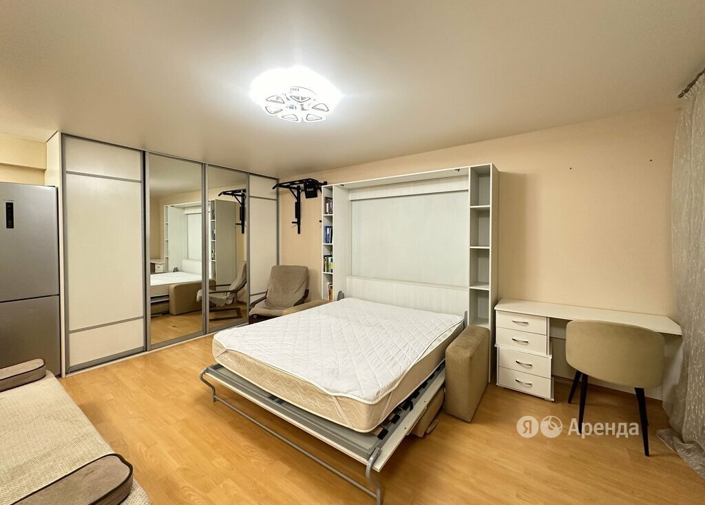 Сдаётся студия площадью 29 кв.м. с косметическим ремонтом на 3 этаже в 9-этажном доме на срок от 11 месяцев. Из техники есть: