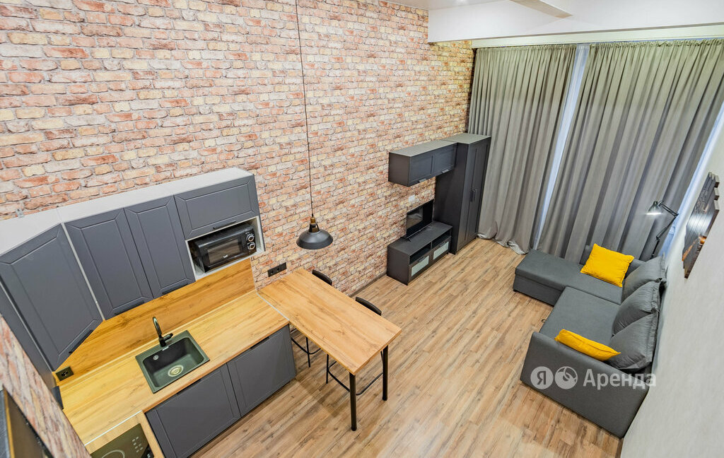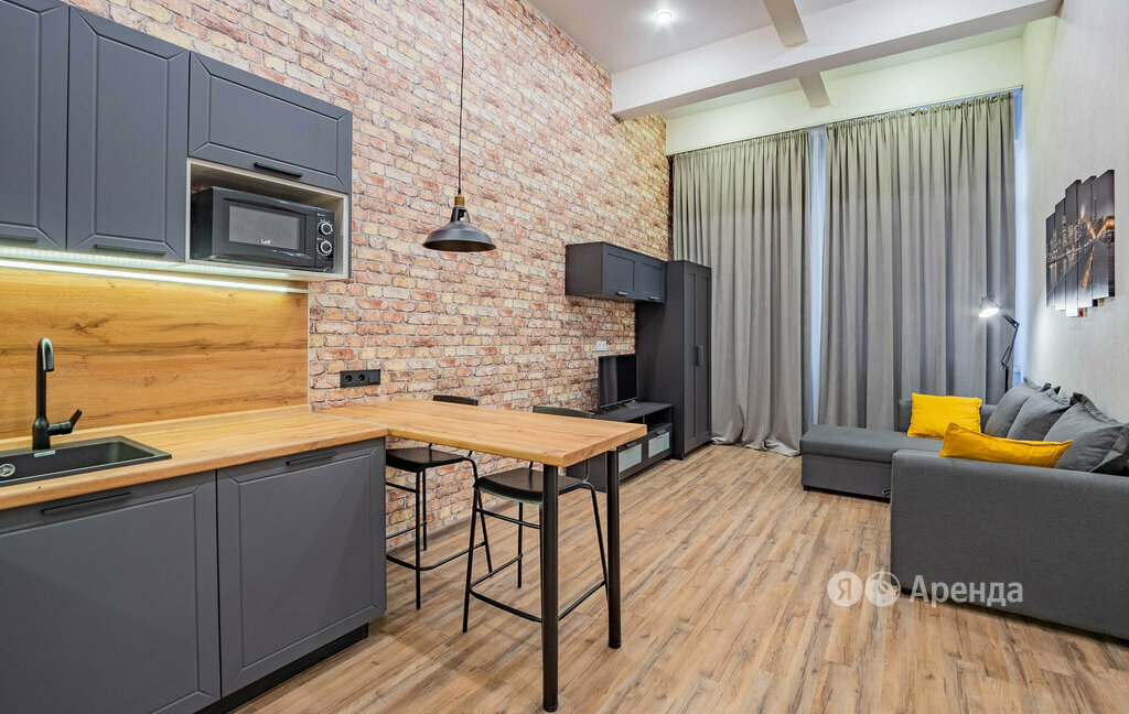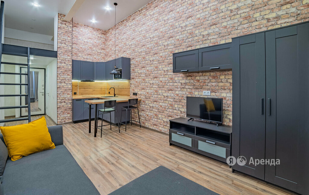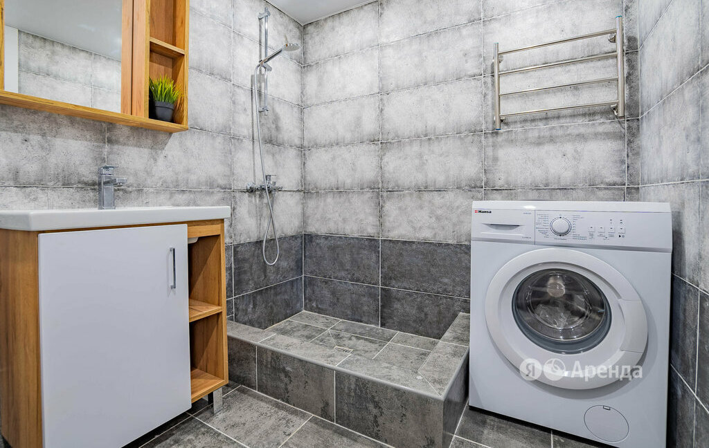 Сдаётся студия площадью 27 кв.м. с дизайнерским ремонтом на 1 этаже в 1-этажном доме на срок от 11 месяцев. Из техники есть: