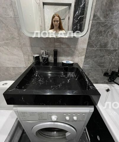 Ванная комната оформлена в современном бело-черном стиле, который никогда не надоест. Есть ванна 165 см, где вы можете расслабиться после трудового дня с пеной и морской солью.