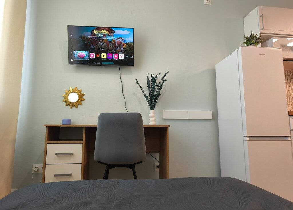 Есть все для комфортного проживания: двуспальная кровать, диван, рабочий стол, оборудованная кухонная и обеденная зоны, стиральная машина, беспроводной пылесос, смарт-тв (подписки Яндекс Плюс + КИОН), Яндекс Станция и система умного дома, скоростной WI-FI (до 1 Гб/сек), посуда и всякие приятные мелочи.