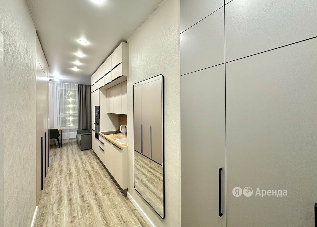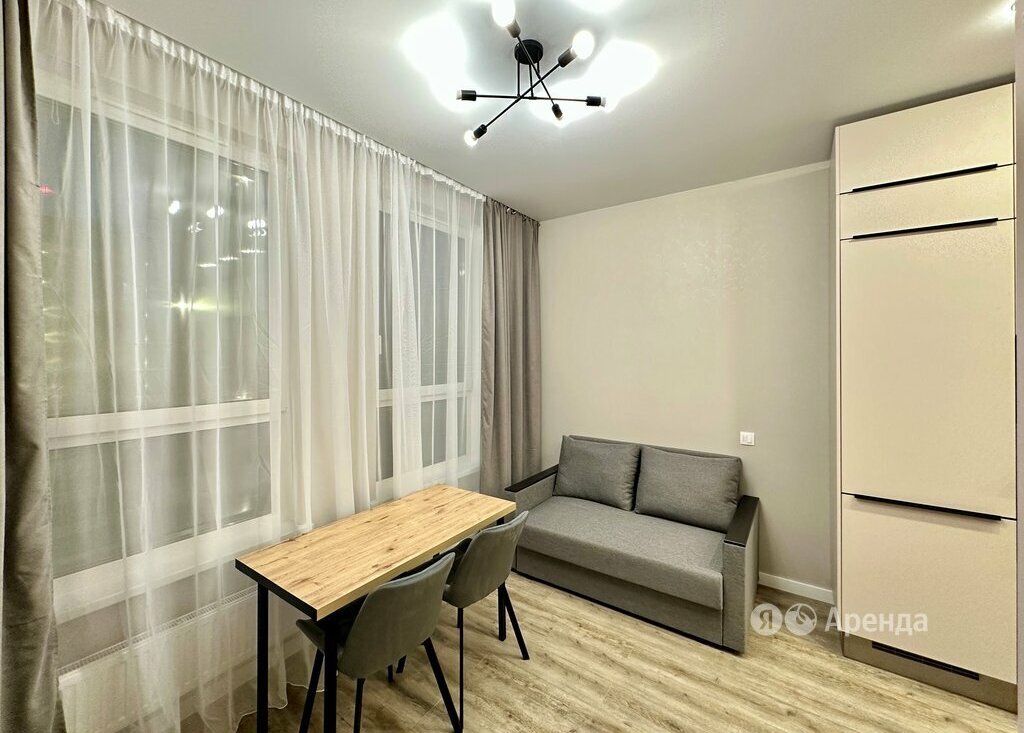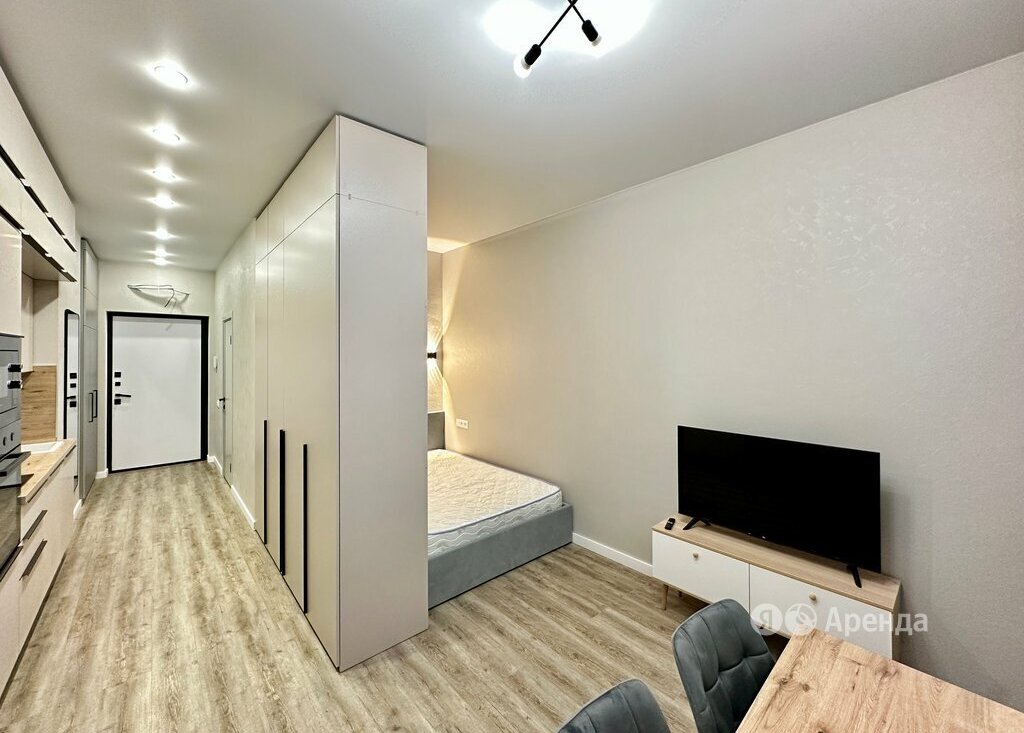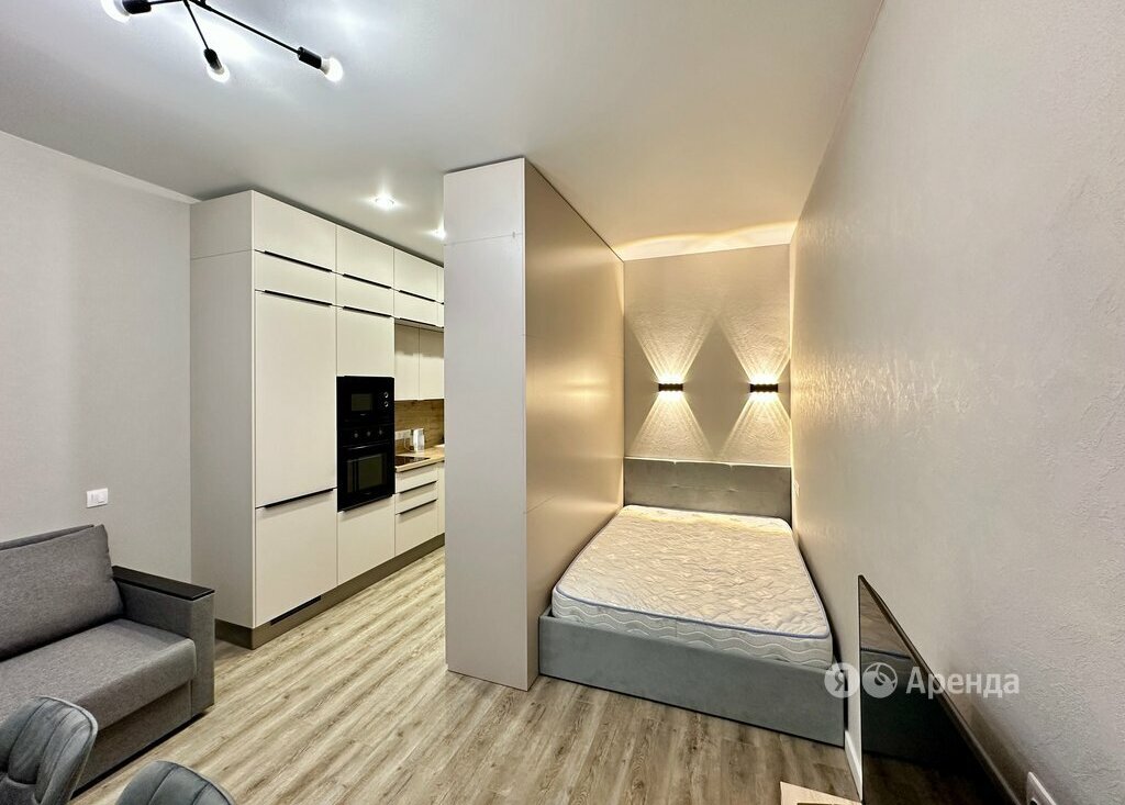 Сдаётся студия площадью 28 кв.м. с дизайнерским ремонтом на 21 этаже в 24-этажном доме на срок от 11 месяцев. Из техники есть: