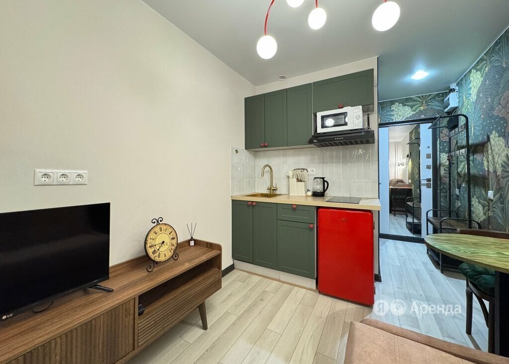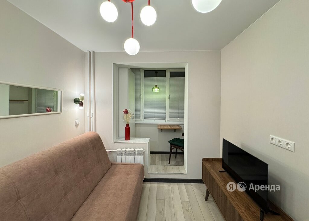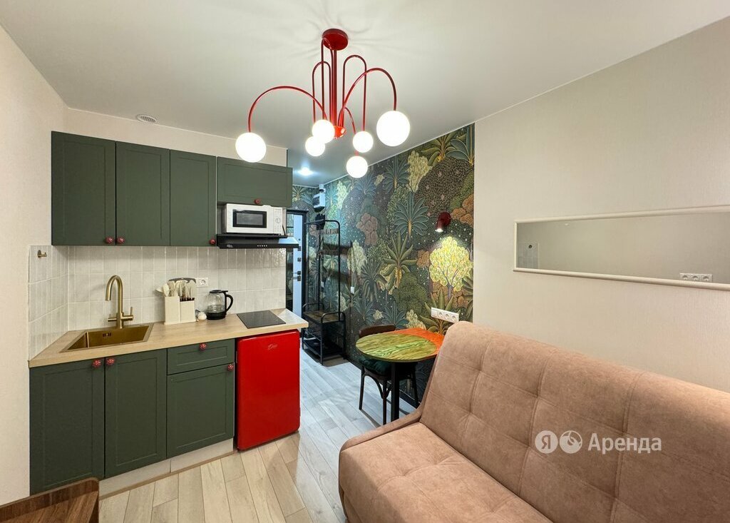 Сдаётся студия площадью 17 кв.м. с дизайнерским ремонтом на 1 этаже в 9-этажном доме на срок от 11 месяцев. Из техники есть: