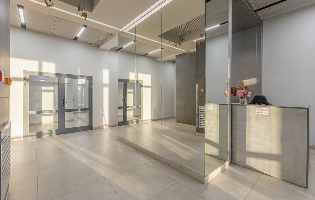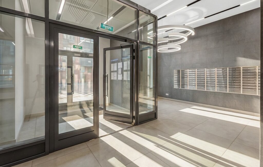 В доме просторный чистый подъезд, консьерж, тихий двор, парковка, круглосуточная охрана, въезд через КПП.