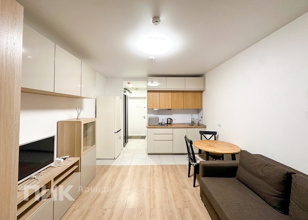 Сдаётся светлая студия с евроремонтом и совмещённым санузлом в ЖК Михайловский Парк.