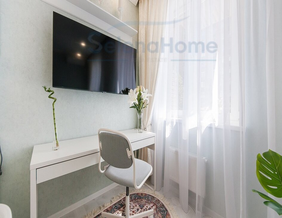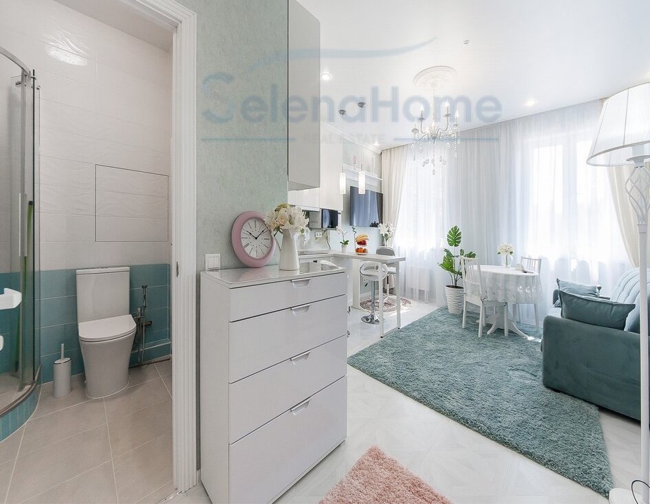 Светлая современная квартира с евроремонтом, площадью 30 м², на 2 высоком удобном этаже 21-этажного здания в жилом комплексе бизнес-класса "Big Time Городской квартал". Высота потолков 2,9 м. Пространство без дверей, зонировано: гостиная и спальня. В ходе ремонта были использованы качественные материалы. Неподалеку расположены общеобразовательные школы с высоким рейтингом, детский сад, взрослая и детская поликлиники, частные медицинские учреждения, магазины, кафе и рестораны. В пределах 10 минут пешком находятся станция МЦК "Хорошёво", станция метро "Народное Ополчение", причал Верхние Мневники. Торгово-развлекательный центр "Хорошо". Лёгкий выезд на Северо-Западную Хорду, ТТК и Звенигородское шоссе.
