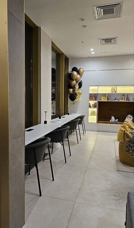 В гранд лобби : коворкинг, места для отдыха, просмотра фильмов, с возможностью поиграть в РS.