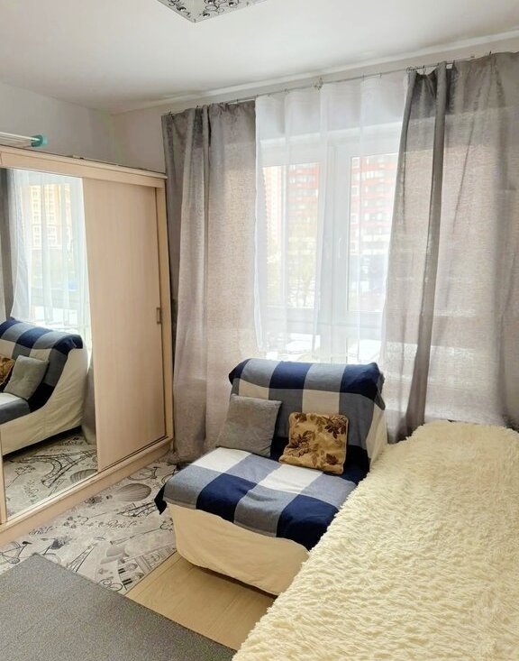 В комнате большая 2-х диван, кресло-кровать, шкаф 2-х дверный, небольшой холодильник, варочная плита!!!