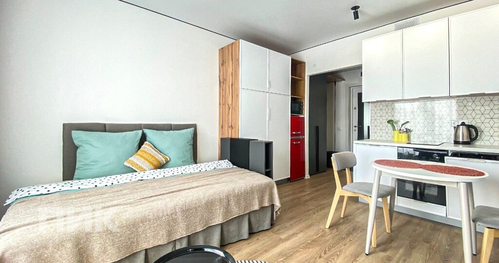Впервые сдаётся светлая квартира-студия с евроремонтом и совмещённым санузлом в ЖК Римского-Корсакова 11, без депозита!