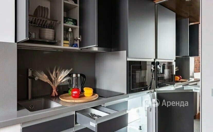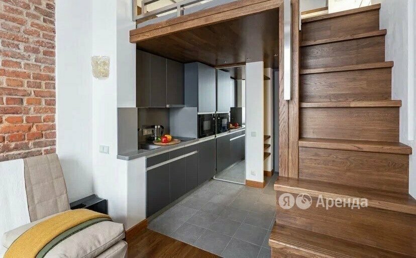 Сдаётся студия площадью 22 кв.м. с дизайнерским ремонтом на 1 этаже в 10-этажном доме на срок от 11 месяцев. Из техники есть: