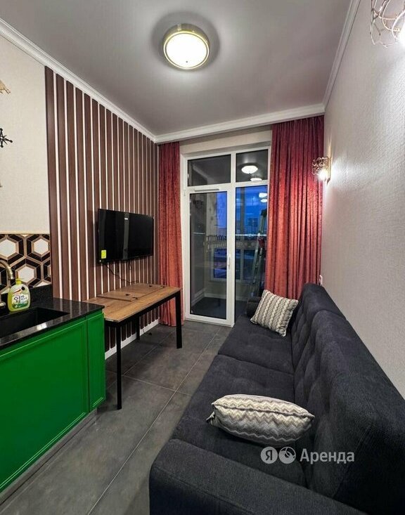 Сдаётся студия площадью 30 кв.м. с дизайнерским ремонтом на 6 этаже в 43-этажном доме на срок от 11 месяцев. Из техники есть: