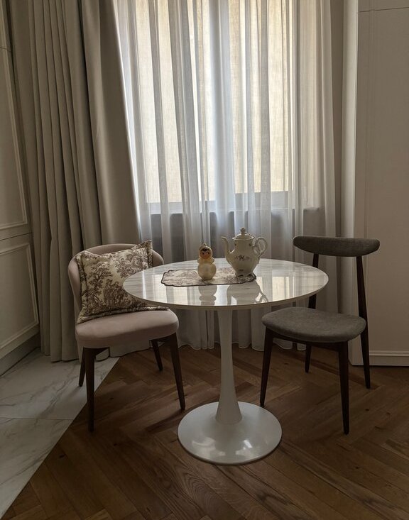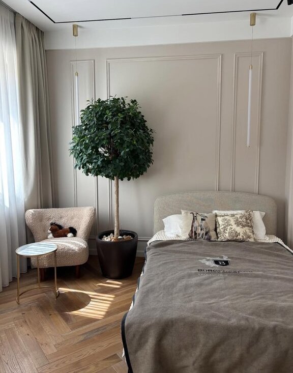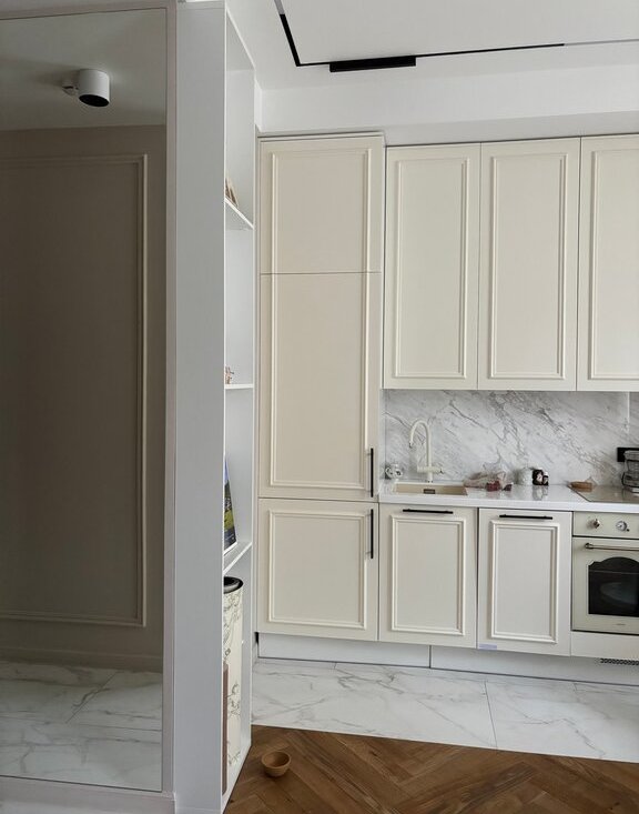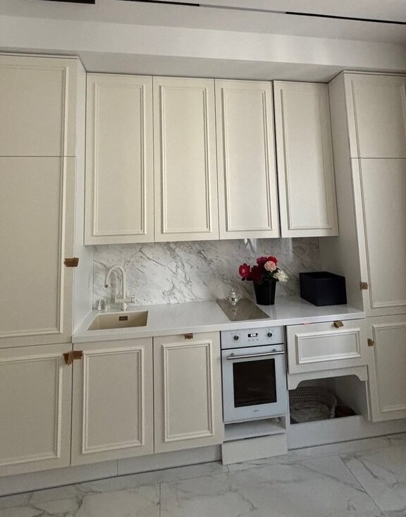 Дорогая отделка , сделана под себя . Пол паркет из дуба . Шкафы с молдингами выполнены вручную на заказ . Кухня состоит из мрамора и керамогранита. Стол керамогранит. Мебель Dantone home , удобная кровать с ортопедическим матрасом .