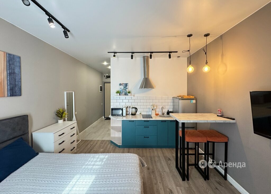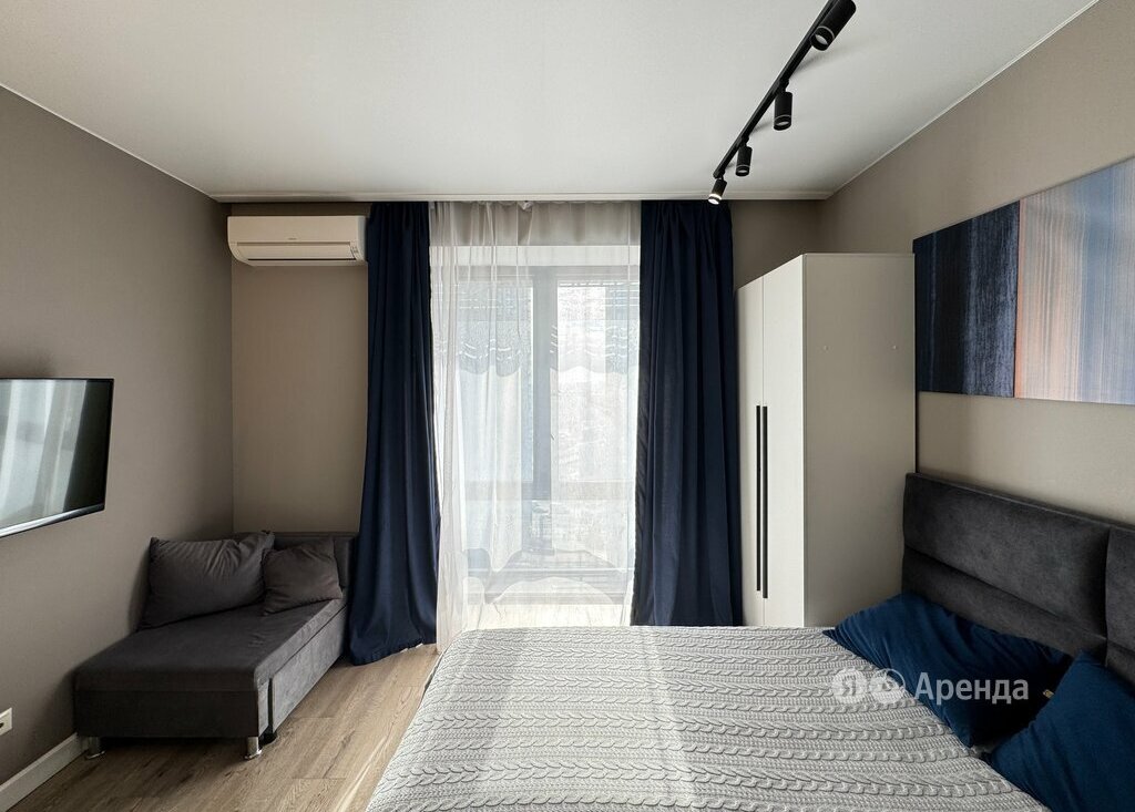 Сдаётся студия площадью 26 кв.м. с дизайнерским ремонтом на 13 этаже в 30-этажном доме на срок от 11 месяцев. Из техники есть: