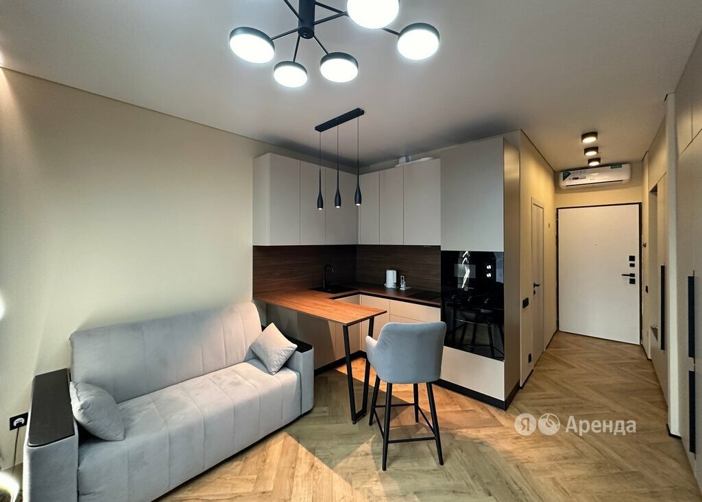 Сдаётся студия площадью 23 кв.м. с евроремонтом на 2 этаже в 30-этажном доме на срок от 11 месяцев. Из техники есть: