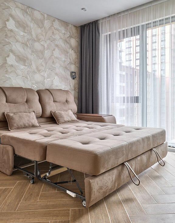 Диван, на котором можно комфортно отдыхать и спать одному человеку не раскладывая или, если разложить, он превращается в полноценную двуспальную кровать)
