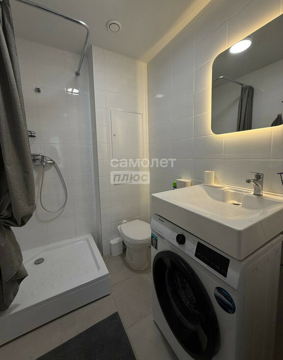 Уютная спальня, полностью оборудованная кухня, холодильник, стиральная машина, телевизор — всё для комфортной жизни.