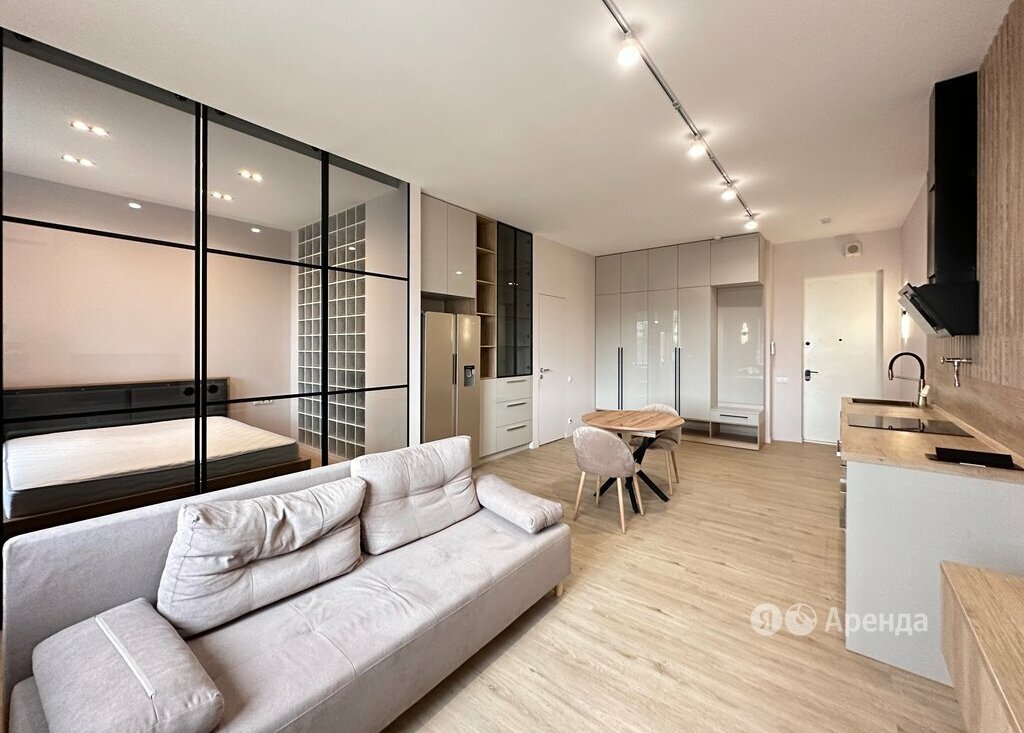 Сдаётся студия площадью 47 кв.м. с евроремонтом на 5 этаже в 25-этажном доме на срок от 11 месяцев. Из техники есть: