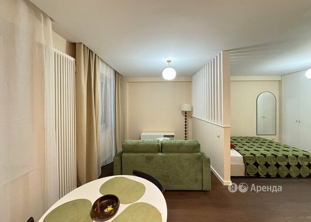 Сдаётся студия площадью 41 кв.м. с дизайнерским ремонтом на 10 этаже в 14-этажном доме на срок от 11 месяцев. Из техники есть: