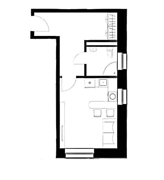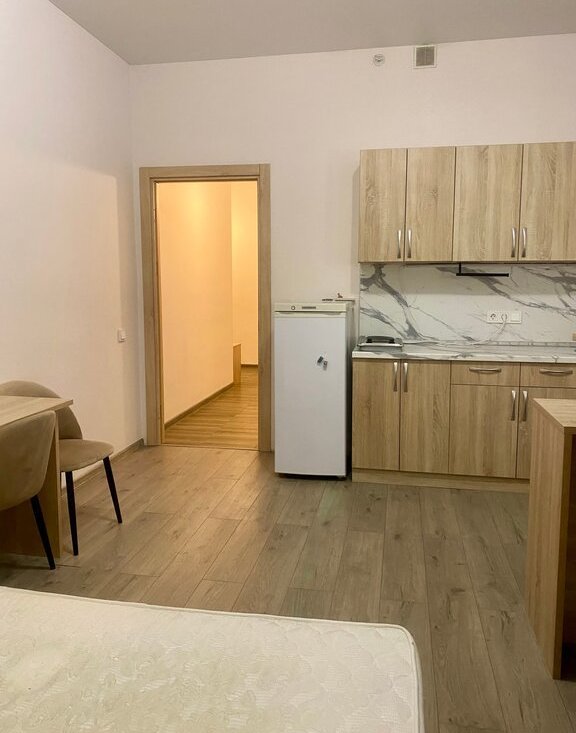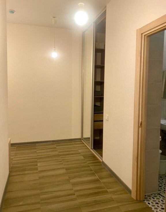 Площадь 33,5м2. Удачная планировка: просторный холл отделен от жилого пространства. Комната 16м2- имеет два окна, что позволяет выгодно зонировать пространство.