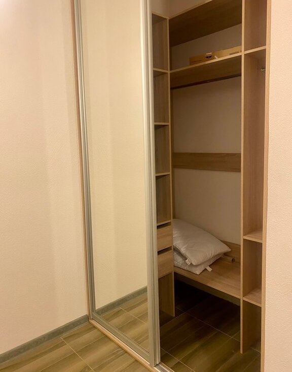 В апартаменте оборудована гардеробная комната.