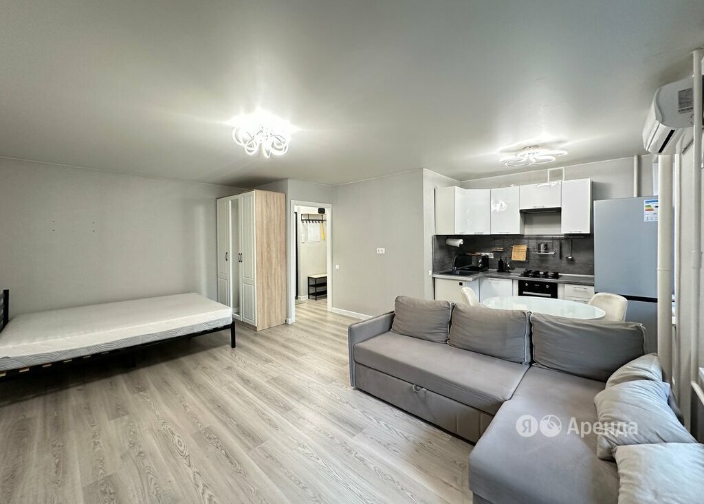 Сдаётся студия площадью 33 кв.м. с евроремонтом на 3 этаже в 9-этажном доме на срок от 11 месяцев. Из техники есть: