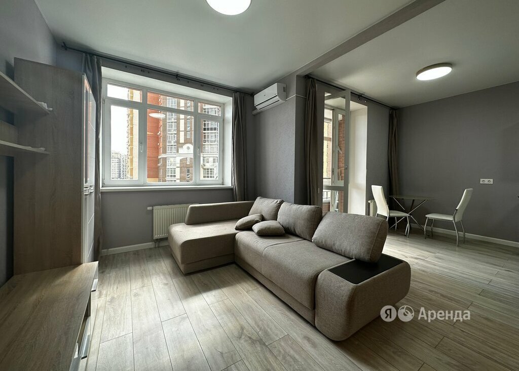 Сдаётся студия площадью 49 кв.м. с евроремонтом на 4 этаже в 16-этажном доме на срок от 11 месяцев. Из техники есть: