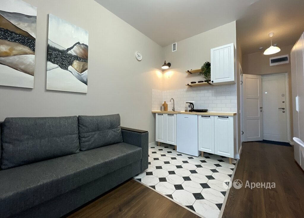 Сдаётся студия площадью 20 кв.м. с евроремонтом на 12 этаже в 15-этажном доме на срок от 11 месяцев. Из техники есть: