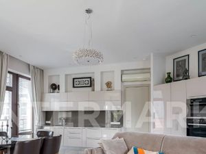 Арт. 2503628 Квартира с дизайнерским ремонтом. Гостиная с панорамными окнами и выделенной столовой зоной. Две спальни, комната свободного назначения. Постирочная, гардеробная. Огороженная, охраняемая территория. Подземный паркинг.