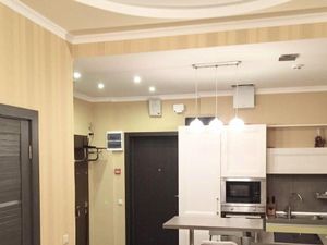 Есть все необходимое - гладилка, сушилка, стиральная машина, телевизор, кондиционер, посуда. В зале диван, на кухне раскладывающийся диван 1,2м.