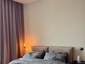 Уютная квартира студия в новом современном доме. 3 / 5 этаж. Апартаменты. Спален: 1, санузлов: 1. Общая площадь: 58 кв.м. Потолки 3.2 м. Ремонт 7. Квартира полностью с мебелью, вывоз обсуждается. Огороженная, охраняемая территория. Охраняемый паркинг. Окна в тихий двор. Есть гардеробная комната. В наличии: посудомоечная машина, холодильник, кондиционер, ванна, стиральная машина, подогрев полов. Телевизор, высокоскоростной интернет. Можно с детьми. Можно с животными.