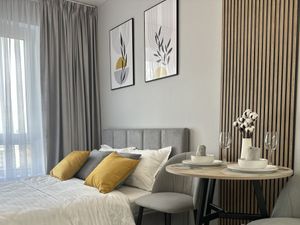 Апартамент укомплектован под ключ вкл. постельное белье. Установлена вся необходимая мебель, эл.плита, холодильник, стиральная машина, утюг, сейф. В апартаменте ни кто не жил. В наличии два соседних апартамента.